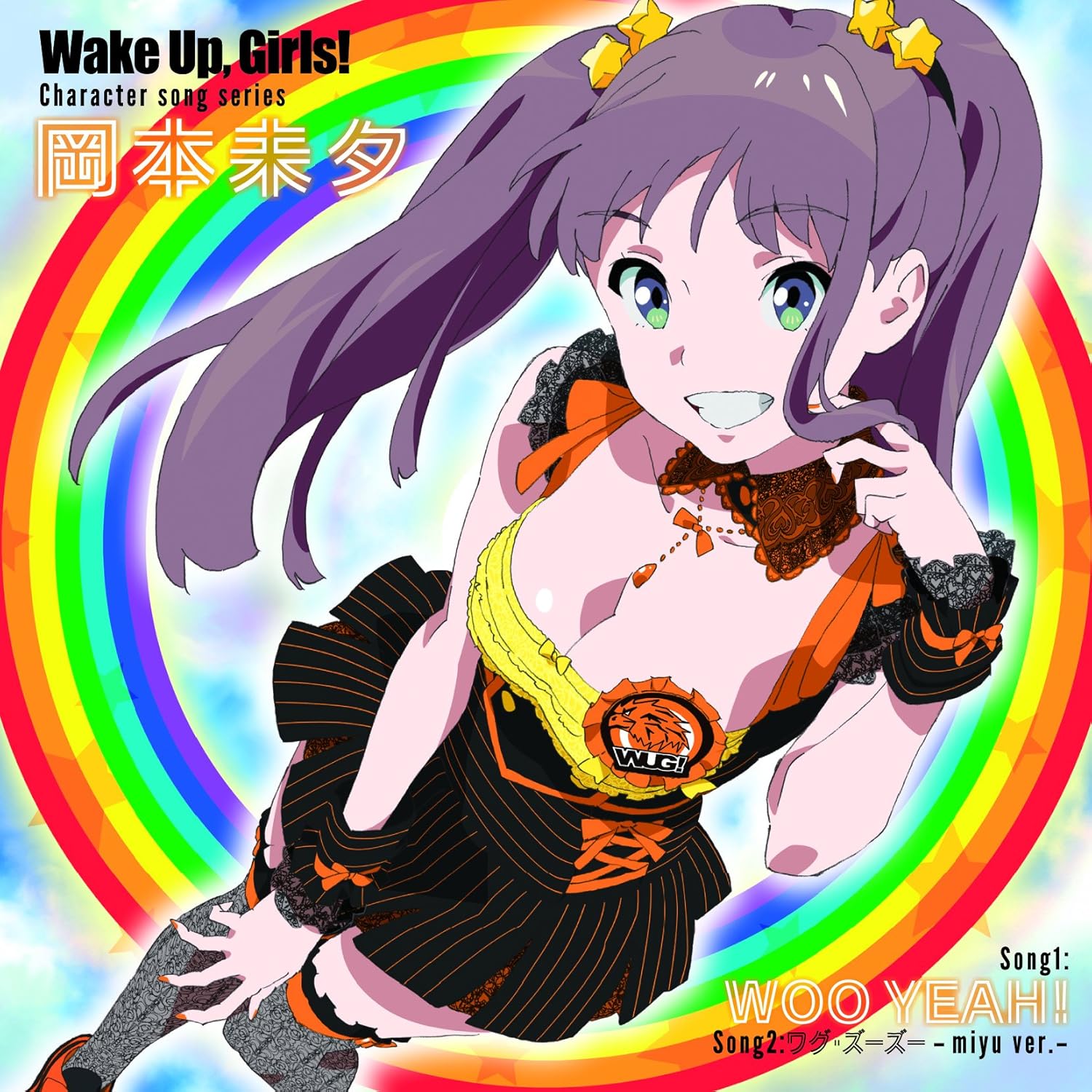 愛称は「みゅーちゃん」こと「岡本 未夕」は、宮城県仙台市で運営する弱小の芸能プロダクション「グリーンリーヴス・エンタテインメント」の社長の「丹下順子」が会社の命運をかけ結成したアイドルグループ「Wake Up, Girls!」のメンバーの一人である。好きなものは「アイドル」であるとあげるほど「アイドルオタク」で、誰に対しても「です・ます」口調で話す。ポーズやトークの研究をしている努力家だが、いじられキャラで精神的にヘタレな部分もあり、今後のアイドル活動に不安を感じている所もある。普段はメイド喫茶でアルバイトをしており、彼女のファンが常連客となるほどの人気者だ。