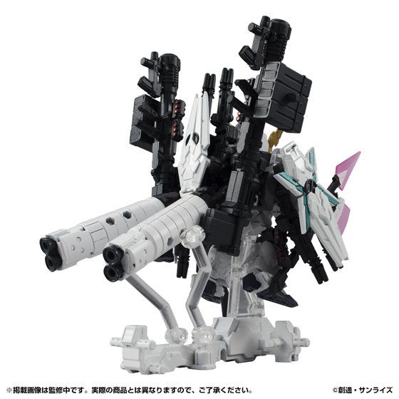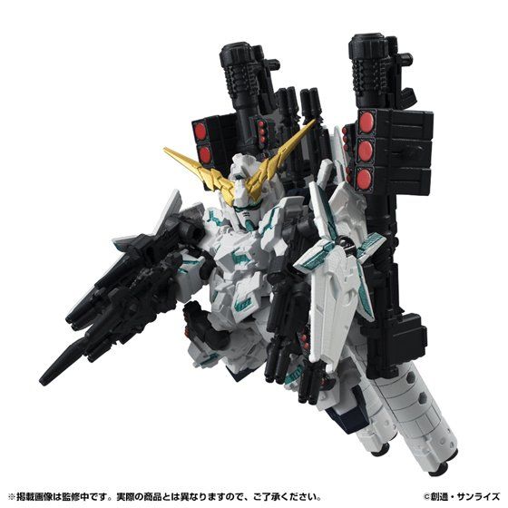 アニメ『機動戦士ガンダムユニコーン RE:0096』に登場するMS「ユニコーンガンダム」に、フルアーマー用拡張装備パーツをセットすることにより、ボリューム感のある「フルアーマー・ユニコーンガンダム」を再現。さらに追加の武装も付属、コンセプトである“武装”を存分に楽しめる。この商品は、デフォルメで表現したミニ可動フィギュアの新シリーズEX第1弾となり、2016年12月に発売開始予定の通常カプセル版に先駆け“覚醒カラー”の本体、拡張フルアーマーパーツとベースジャバー型の台座をセットにしたプレミアムバンダイ限定の豪華セットだ。