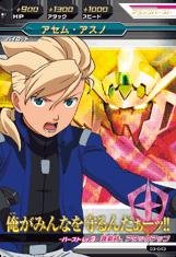『ガンダム』シリーズの中で珍しく「アスノ」家の親・子・孫の三世代に渡る人生を描いた物語で、この「アセム」は二代目にあたる。やや襟足の長い後ろ髪を束ね、親より少しヤンチャなイメージがあるが、心優しく人情味あふれた性格で、モテ男でもある。優秀にして歴史に名を残す功績を持つ親「フリット・アスノ」の子供として、常に親と比べられる環境の中で生き、どこか劣等感を背負っていて、後に親や地球の組織からも独立し、宇宙海賊として生きる道を選ぶ。これは現実から逃げたのではなく、自分の力量と立場と将来展望を正確かつ的確に分析した結果であり、その判断は正しかったと言える。三世代に渡る三人の人生を比べてしまうと、どうしても真ん中の世代は個性に欠けたり、印象が薄くなりがちであるが、そのセオリーを見事に覆した稀有の存在でもある。なお、初登場の17歳の青年から20歳代までの多感な時期を「江口拓也」がキッチリ演じ上げ、40歳代以降は別の声優にバトンタッチし、見事に代替わりしている。