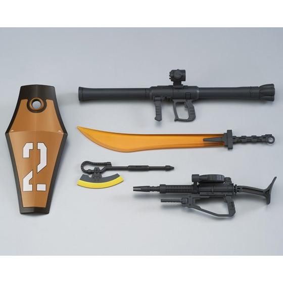 マニュピレーターの形状変更に伴い、手持ち武器として、ザク・バズーカ、ザク・マシンガン、ヒートホーク、ヒートサーベルにシールドが付属。
