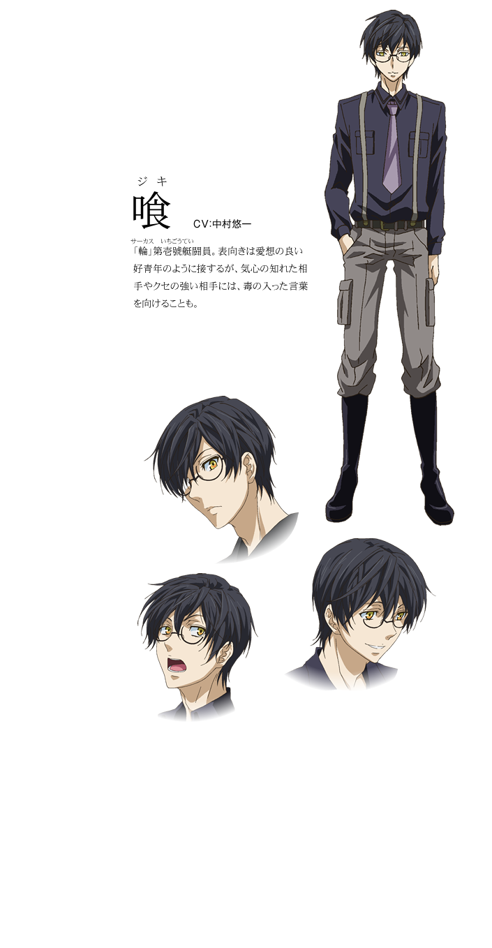 『カーニヴァル』の登場人物である「喰」は、主人公に面と向かって「捨て駒なんじゃないかな」と発言したり、自らの上司に対して「汚い大人」だと言い放つ毒舌家だ。しかし外面は良く、丁寧で穏やかな一面も持つ。その一面が発揮されるのは、自分と直接関係が薄い相手や常識人に対してのみで、ある程度の慣れのある相手や癖の強い相手には遠慮なく毒の強い言葉を浴びせるのだ。どのような過程を経てこのような性格となったのか、少々気になるところだ。いつか彼の表面上だけではない、心からの優しさが見られる日は来るのだろうか。