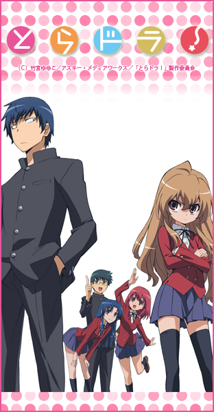 この作品のヒロインで主人公「高須竜児」のクラスメイトでもある多感な高校生。長髪で髪の量も多く、名は体を表すを地で行く「手乗りタイガー」の異名を持つほどの凶暴さを持つ。身長は低く、貧乳で、その点に触れると正に逆鱗に触れるかの如く暴れるので誰も触れないようにしている。昔ヤンチャしていたと言う過去形ではなく、主人公やクラスメイトとの交流によって徐々に女性らしさを手に入れつつある現在進行系の物語であるが、仮に女性らしさを手に入れなくても「大河」の一挙手一投足が気になって仕方ない視聴者も多い。何が魅力なのかは人それぞれによって異なるであろうが、豪速球で勝負する正統派投手ではなく、多彩な変化球を駆使する技巧派の投手を連想させる。つまり「大河」の多彩な変化球を楽しむ作品であり、その要素が満載の楽しい学園ラブコメになっている。また担当声優「釘宮理恵」の人気も後追ししているが、それもこの「大河」のキャラクター性があってこそである。