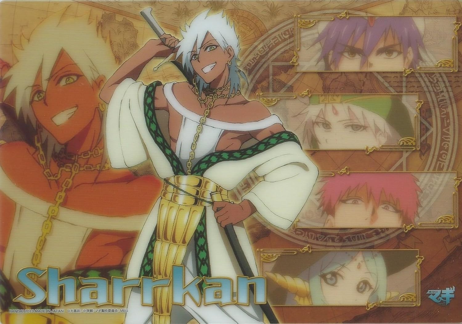 銀の髪に浅黒い肌が特徴な、元王子の美男子。幼少期に父王に先立たれ、紆余曲折の後「シンドリア王国」の「八人将」にまで上り詰めた。同じ「八人将」の「ヤムライハ」とは、常に魔法と剣のどちらが強いかで口論になるが、実は意中の相手だったりする。高い剣術の才能があり、その腕は「シンドバッド」をも凌ぐ。「アリババ」の剣術の師匠だが、修練になると人が変わる。今でこそ楽天家だが、過去には王国を追われ王位継承権を剥奪されるなどの辛い体験をしている。