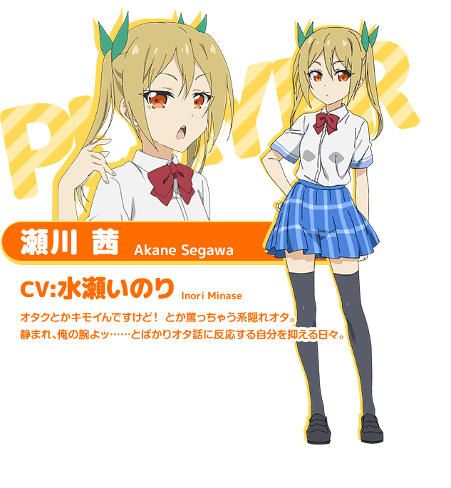 主人公「西村英騎」のクラスメイトでゲーム内ではギルド「アレイキャッツ」のメンバーの1人。気が強くて良識的な言動が多くツッコミ立場でいることが多いが、隠れオタであるためオタク思考で話す事もある。