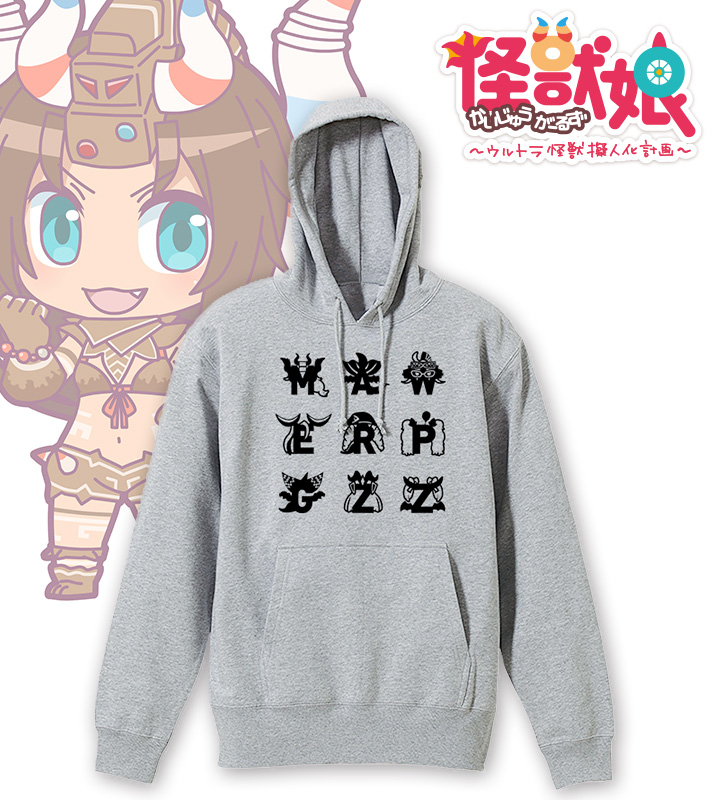イニシャルデザインパーカーは、『ウルトラ怪獣擬人化計画』に登場する各キャラクターをそれぞれのイニシャルにかけあわせてデザインしたカジュアルなもの。今回のために作製、デザイナーのこだわりが詰まった、怪獣娘とイニシャルをかけあわせたグラフィックは今回のために作製されたオリジナルとなっている。