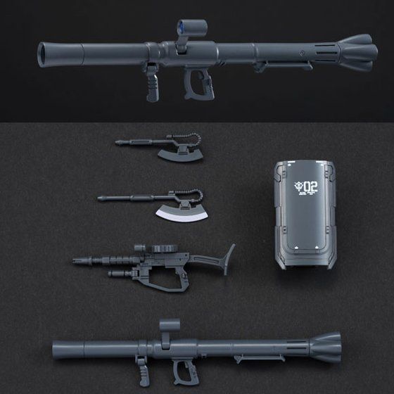 劇中でマッシュ機が装備した、MS用バズ—カA1型を一部新規パーツを採用し再現、その他にも、シールド、ヒート・ホーク、MS用マシンガンが付属され、黒い三連星各機のポージングを楽しむことができる。