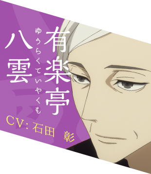与太郎の師匠であり、昭和の最後の大名人とも言われる人気落語家。性格は神経質で気難し屋で常にマイナス思考なので欝々としていることが多い。幼少のころ、母親の影響で三味線や日本舞踊を一通り習わされていたのでプロ顔負けの技術を持っている。得意な演目は、遊郭ものや怪談物。艶のある遊郭の女役を得意とする。