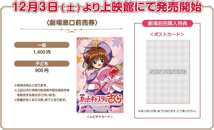 1999年に公開された『劇場版 カードキャプターさくら』が、連載20周年記念として2017年1月21日よりリバイバル上映される。12月3日より発売される前売り券には、ポストカードが購入特典としてついてくる!