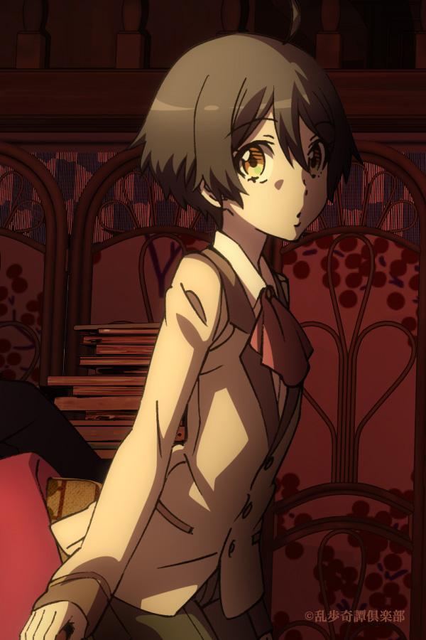 他者への興味が極端に薄い男子中学生。周囲から浮いているが、クラスメイトの「ハシバ」と親しい。中性的な顔立ちから女子に間違われることが多く、新しく担任になった先生にハグされ、女子にその容姿を「ずるい」と言われたこともあった。というのも、脚を閉じて内股であったり、座り方も女子のようだったり、制服のネクタイがリボン結びだったり、仕草を含めて女子より女子らしいのである。また、ひょんなことから知り合った天才探偵「アケチ」の仕事を手伝っており、おとり捜査で女装することが多く、本人も気に入っているらしい。ワンピース姿を「ハシバ」に披露し「似合う」の言葉が出るほど、まさにショートカットが似合う美少女であった。
