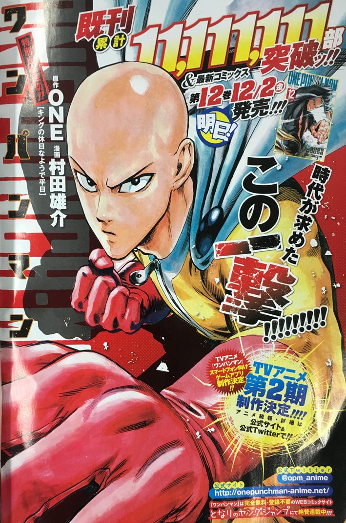 どんな敵もワンパンチで倒してしまう、最強無敵のヒーロー、「サイタマ」が主人公の大人気マンガ『ワンパンマン』のコミックス最新12巻が発売される。また、現在『となりのヤングジャンプ』から『週刊ヤングジャンプ1号』へ読切掲載中!